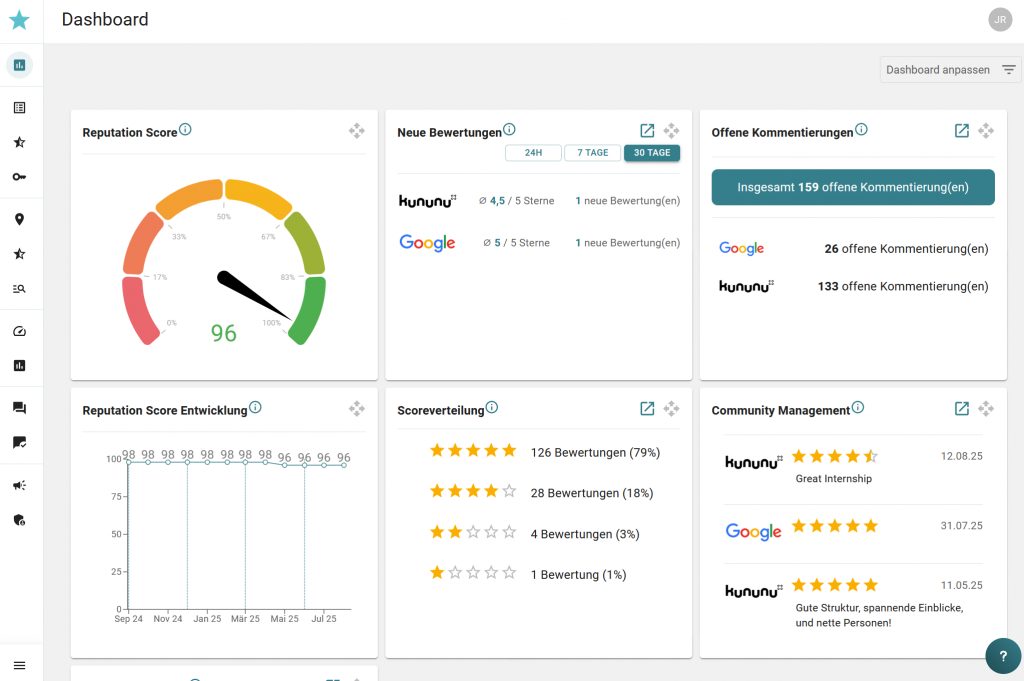 Entdecken Sie unser ganzheitliches Reputations- und Bewertungsmanagement - als komfortable All-in-One-Lösung. So managen Sie Ihre Online-Reputation effizient und smart. Und wenn Sie operative Unterstützung benötigen, helfen Ihnen unsere Projektmanager:innen gerne bei Ihren Projekten.